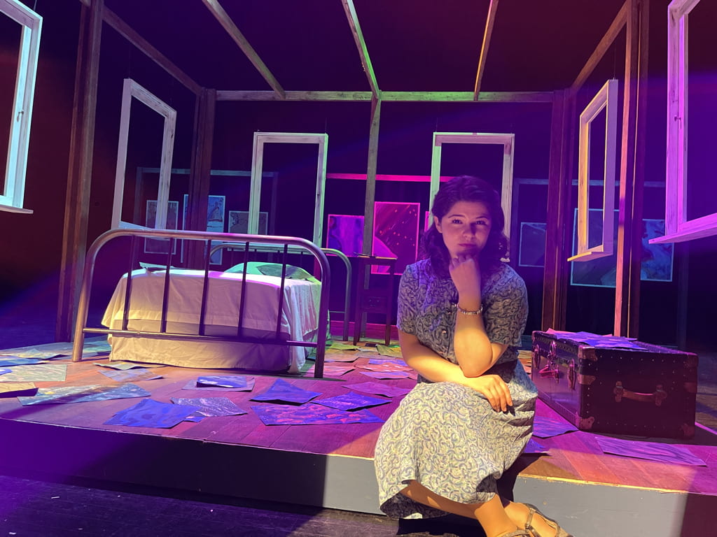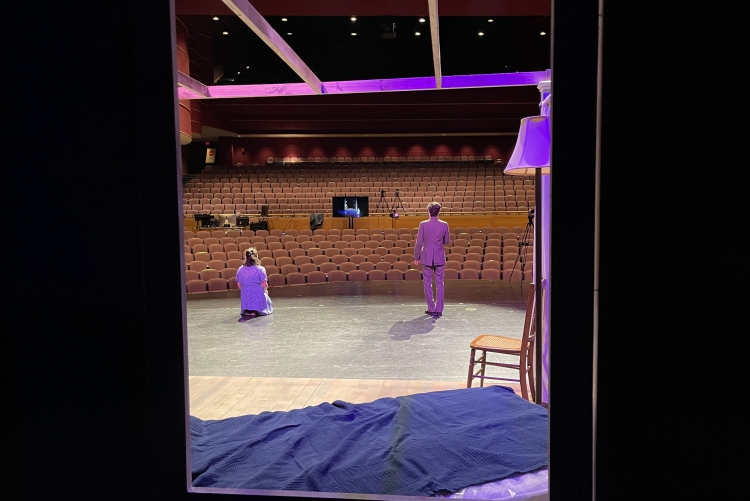 While Leah was writing the script during the fall semester, the department formulated a plan with her to film a fully produced play live onstage with sets, lights, costumes, and sound. So not only would this be a fully produced play, it would also be filmed, a first for everyone involved. Leah showed exemplary collaborative and leadership skills by leading a full design and editing team of students through a completely new process. Together they created storyboards and followed a shooting schedule that spanned four 4-day periods over a month. Her methodical planning and dedication resulted in one of the best collaborative processes I have ever witnessed during my ten years at Lehigh, whether student or professionally led. I am in awe of Leah's fearlessness, flexibility, and willingness to take risks with this project. Leah has created an amazing piece of theatre by honoring an incredible artist through a well-researched, contemplative, and empathic lens.