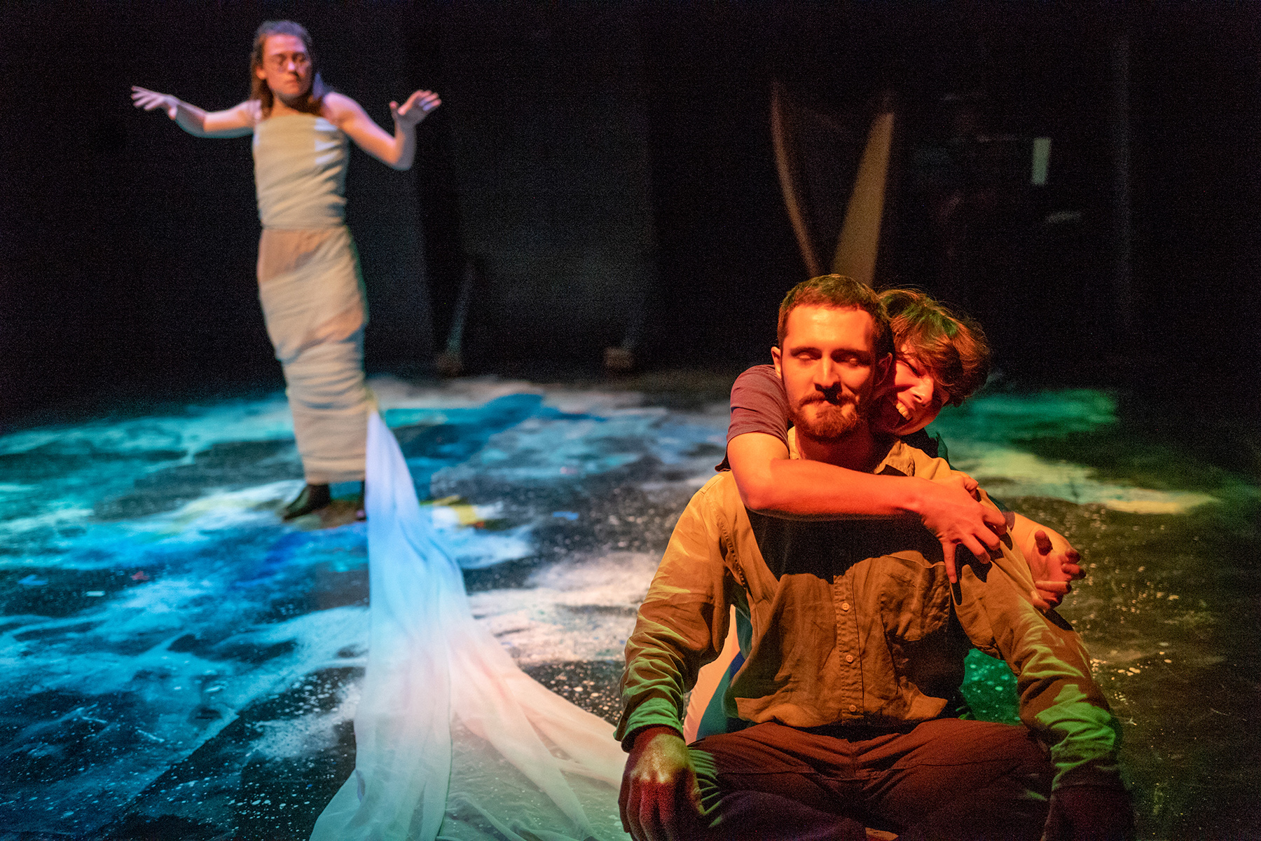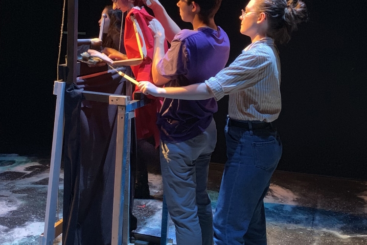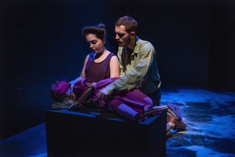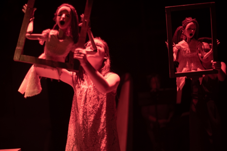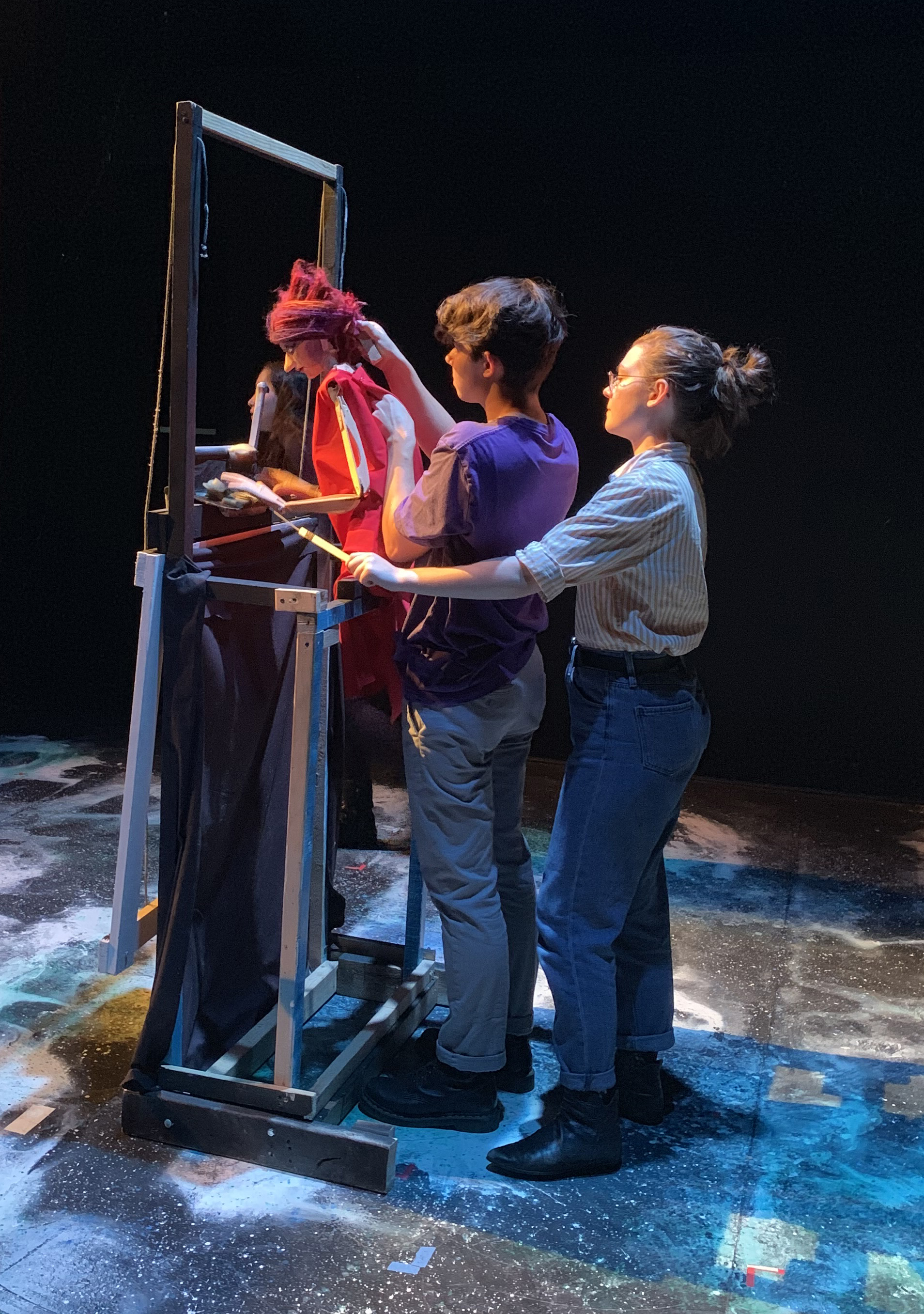 The Secret won the 2019 Play of the Year at the ABE Awards in the Lehigh Valley Press. Coproduced by Mock Turtle Marionette Theatre, it was a visceral and musical journey through queer poet and Bethlehem native, Hilda Doolittle’s, life and poetry. The play, completely devised by the company, combined Hilda’s poetry and life events to create a visually and aurally compelling performance. This was the first time I was creating an environment for performers, musicians, and host of puppets. Meeting all the needs was a special challenge in a small venue and limited timeline. This was a true community effort as my students built the numerous hand-made paper flowers and details used throughout the play.The Secret is about the life of and work of poet Hilda Doolittle (H.D.). The play, coproduced by Mock Turtle Marionette Theater and Touchstone, is the culmination of Finding. H.D., a 12-month public community-based exploration of Doolittle, who is now widely recognized as a queer, feminist visionary, and the most influential literary figure born in the Lehigh Valley.