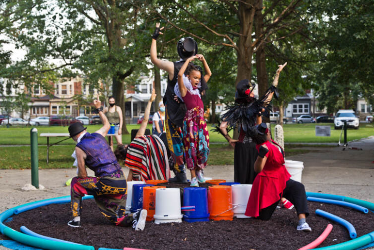 Peril’s Island is inspired by Shakespeare’s PERICLES: Prince of Tyre (performed in Clark Park), but is a completely original immersive experience. This production is one of two Park Plays, a project developed by Shakespeare in Clark Park which uses Shakespeare’s text as inspiration for a community centered original work. These Community and Company Artists from the Harrowgate community in Phildelphia generated ideas, movement and corny jokes from 2019 - 2021. We persevered through the most difficult circumstances of COVID19 to produce this important community-based work. Peril’s Island is unique to these people and this place.