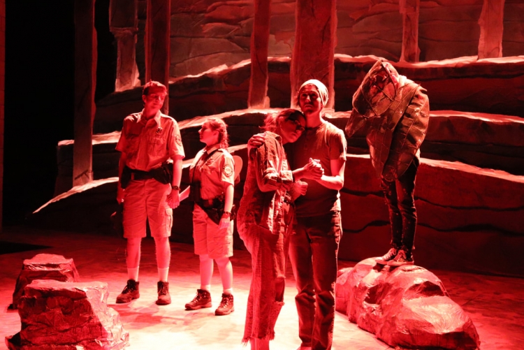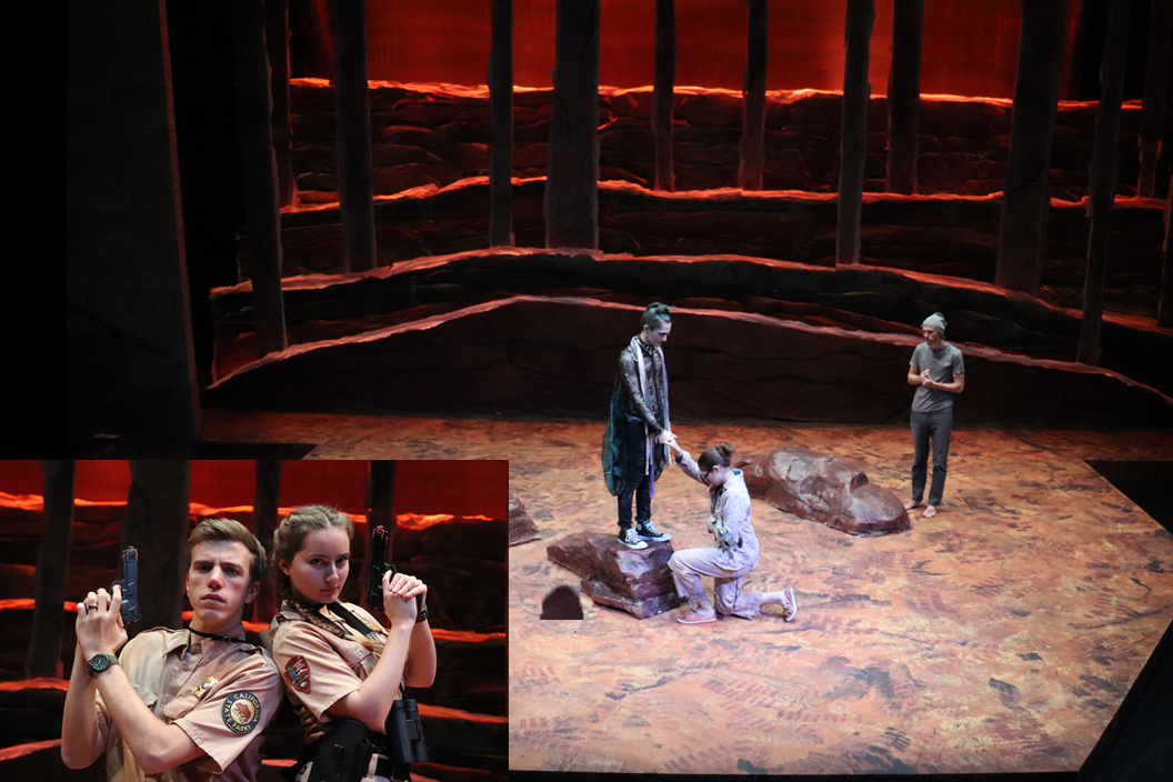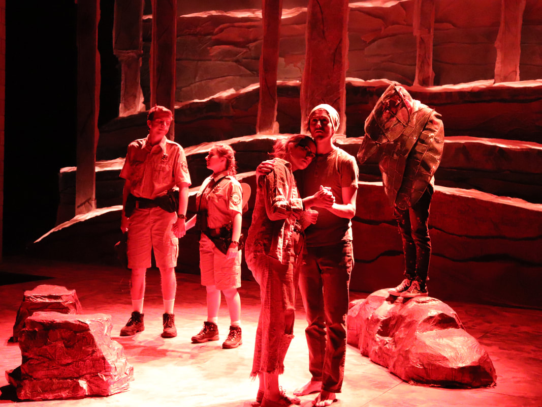 The Broken Machine is a world premiere commissioned by Lehigh University Department of Theatre through the Horger Fund. Playwright Liz Duffy Adams joined us in a year-long residency to both teach a playwrighting course and write this play for the Lehigh community. Our students had the opportunity to collaborate with Ms. Adams on making a new play in all areas of performance and design. Inspired by the 2016 California fires, the play is a climate-chaos comi-tragedy. A burnt-out coder has become a hermit in the wilderness, nursing a broken arm and making lists from memory—of endangered species, moments of Lost Time, Incorrect States of Mind—in company with her only friend, a gray fox with a bad attitude. When wild fires approach they flee through the wilderness to the sea, pursued by feckless would-be rescuers and threatened by a punk psychopomp.