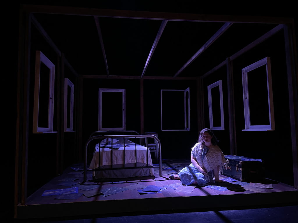 While Leah was writing the script during the fall semester, the department formulated a plan with her to film a fully produced play live onstage with sets, lights, costumes, and sound. So not only would this be a fully produced play, it would also be filmed, a first for everyone involved. Leah showed exemplary collaborative and leadership skills by leading a full design and editing team of students through a completely new process. Together they created storyboards and followed a shooting schedule that spanned four 4-day periods over a month. Her methodical planning and dedication resulted in one of the best collaborative processes I have ever witnessed during my ten years at Lehigh, whether student or professionally led. I am in awe of Leah's fearlessness, flexibility, and willingness to take risks with this project. Leah has created an amazing piece of theatre by honoring an incredible artist through a well-researched, contemplative, and empathic lens.