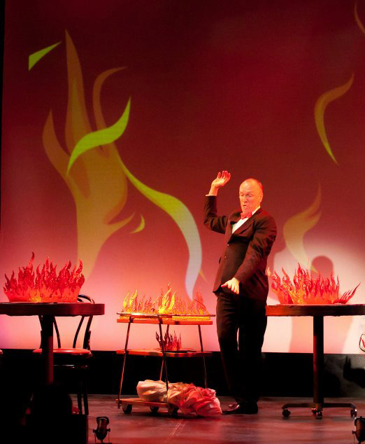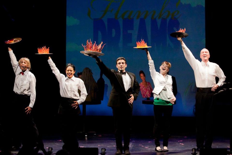 Flambé Dreams tells the story of a young man from Preston, Idaho who comes to New York City to pursue his dream of becoming a great Maitre d' like his father who was killed in a freak flaming bananas foster accident. This show posed a unique technical challenge – the entire premise of the show is that the lead character’s passion is creating flaming desserts, and due to open flame restriction on NYC stages, real flaming desserts were not an option. Putting my creativity and technical expertise to work very early in the process, I experimented extensively with a myriad of ideas which lead me to creating pop-up book style flames that not only solved the problem of the open flame, but was met with laughter and applause every night and contributed to the identity and humor of this musical comedy.