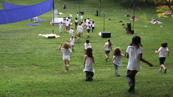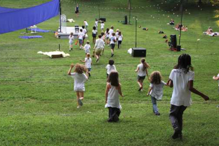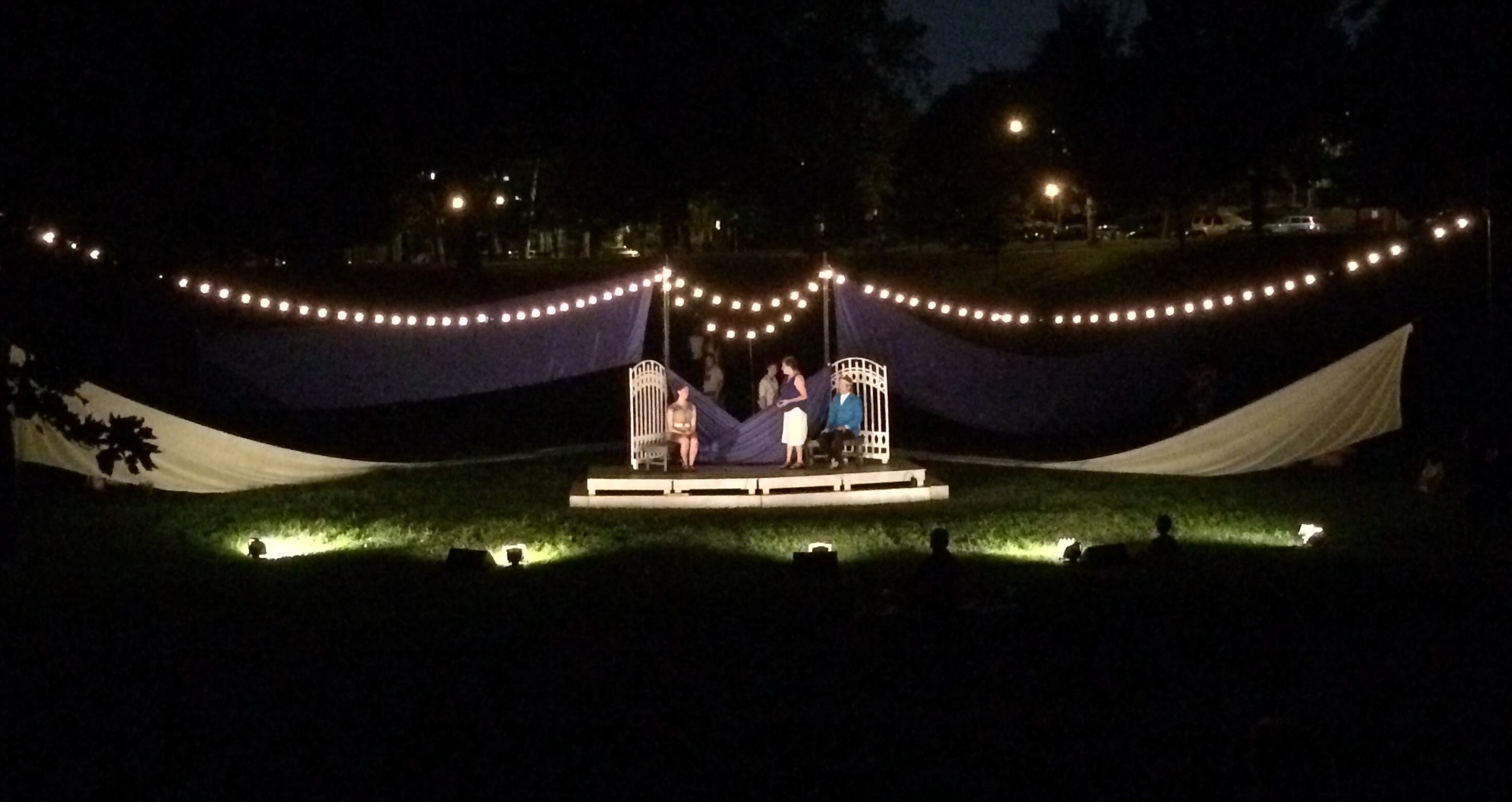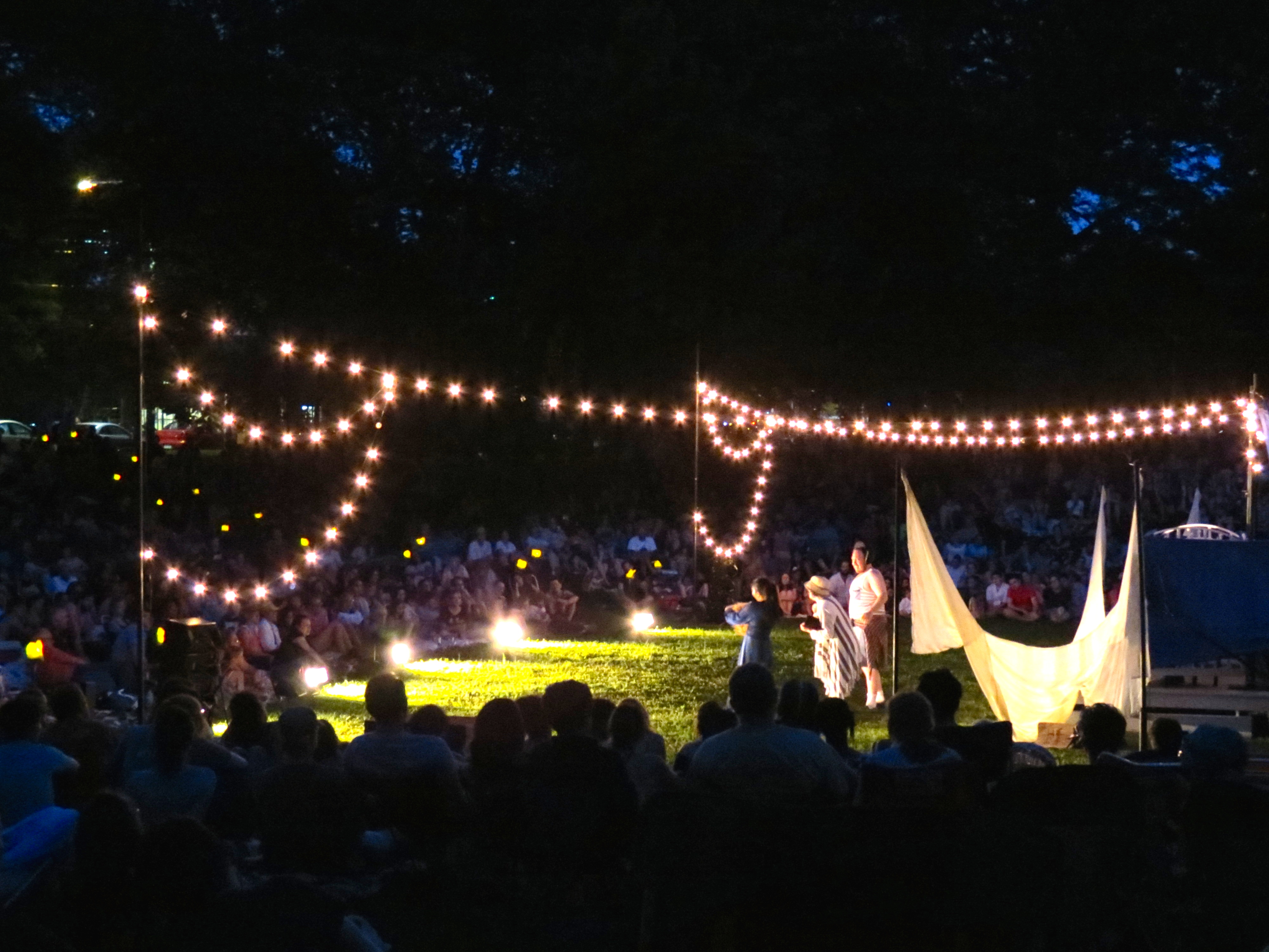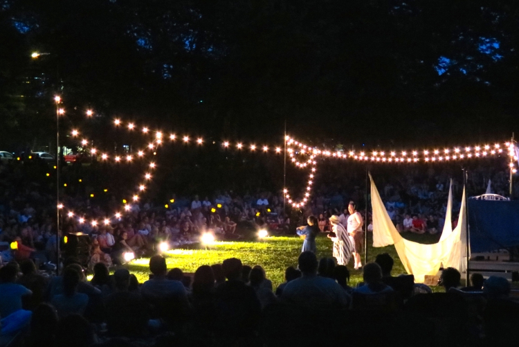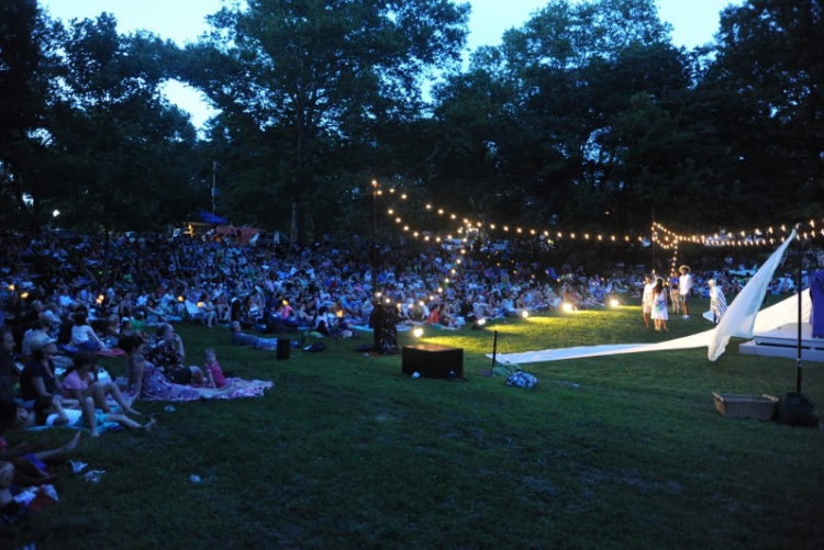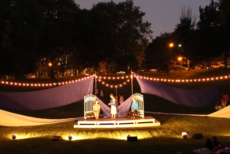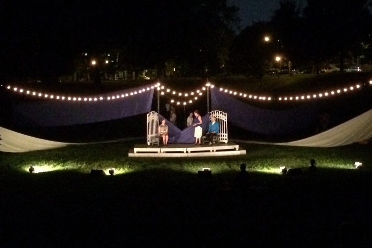Shakespeare in Clark Park, an annual tradition, brings top-quality local actors to perform classic Shakespearean works and are incredibly well attended. Just one Saturday night performance can attract more than 1,000 people and their picnics. For SCP's tenth anniversary production of The Winter’s Tale, I worked closely with the director and puppet designer to create a whimsical, interactive environment for this outdoor production which integrated a chorus of 25 children and a large-scale bear puppet into the story. As with many outdoor environments, the key function of the scenery was to keep the audience focused on the action while also allowing the actors to connect with the audience. The result was a minimal flexible fabric environment that the actors moved as part of the action of the play.