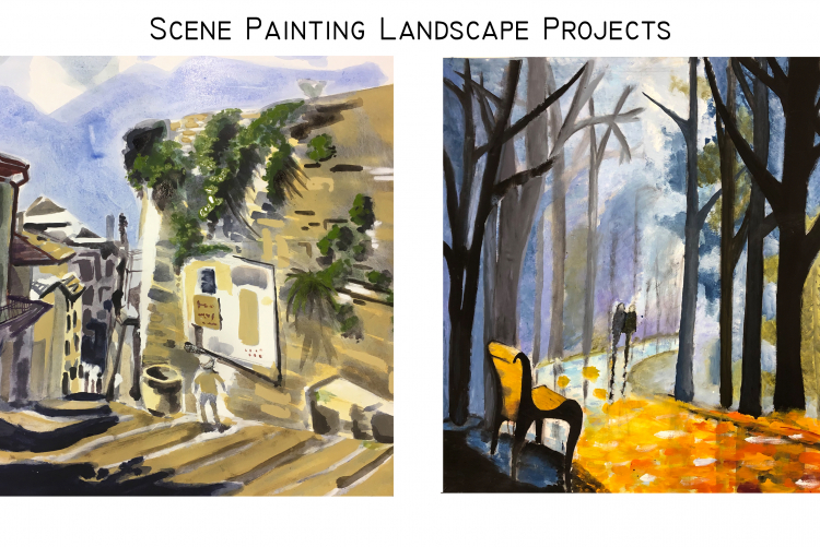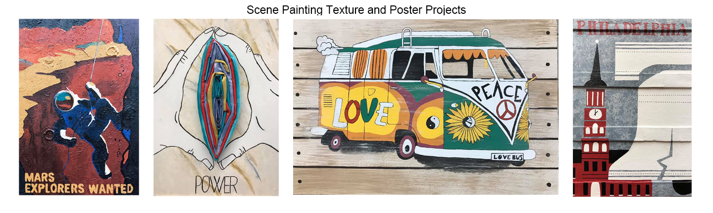 These are samples of student work from the scenic painting classes I teach at Lehigh University: Basic Scene Painting and Studio Scene Painting.